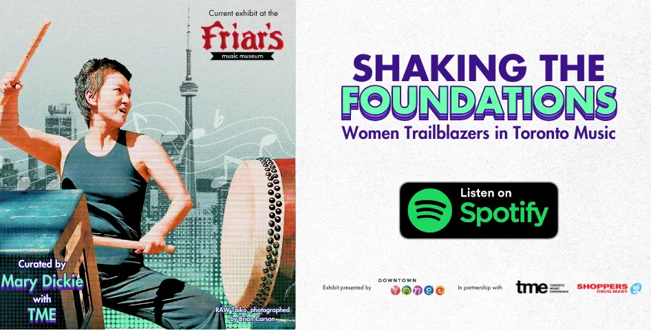 Shaking the Foundations is a Downtown Yonge BIA initiative, presented in partnership with Toronto Music Experience and curated by longtime music writer Mary Dickie. As the first-ever exhibition to spotlight the creative and cultural impact of Toronto women in music, it highlights the artists whose unique attitudes, traditions, and histories have shaped the city’s musical landscape across virtually every style and genre.
