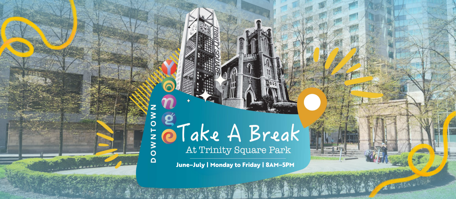 Recharge with free daily activities at Trinity Square Park—a hidden gem tucked behind CF Toronto Eaton Centre.